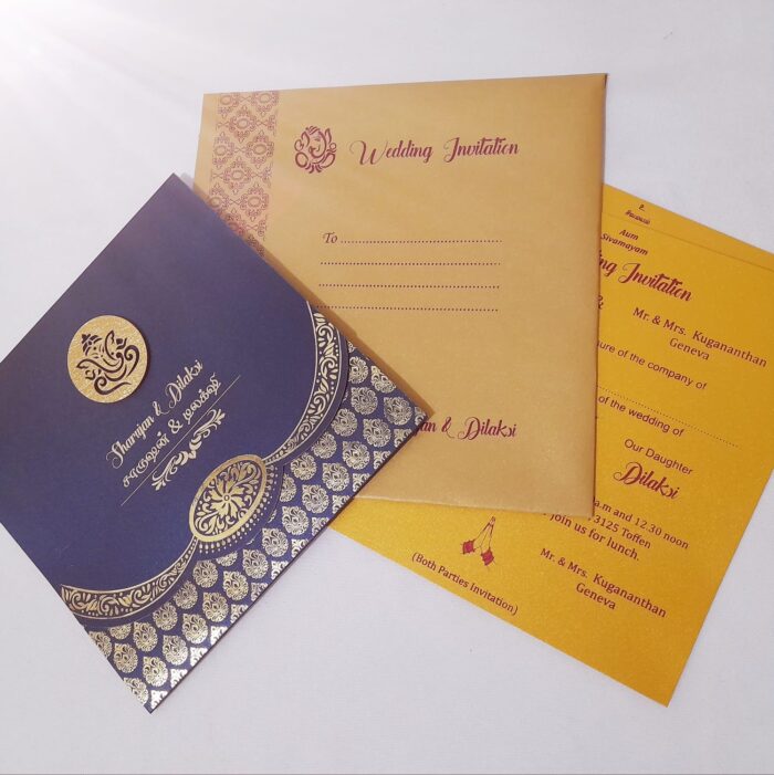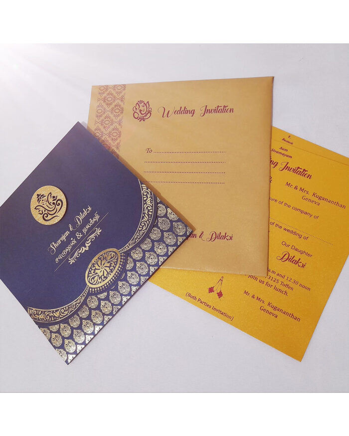 Indian weddings, and Tamil Hindu weddings are very colorful. They are traditional and rich. You also invite guests from different cultures. We create the look and feel of a classy finishing to a very traditional or very modern wedding invite. We use our technical expertise such as foiling, emboss, watermarks, velvet finishing and many more. Our printing background is rich and deep with more than 25years of experience in the industry, We use our expertise to mix the above techniques at correct places and appropriate proportions.