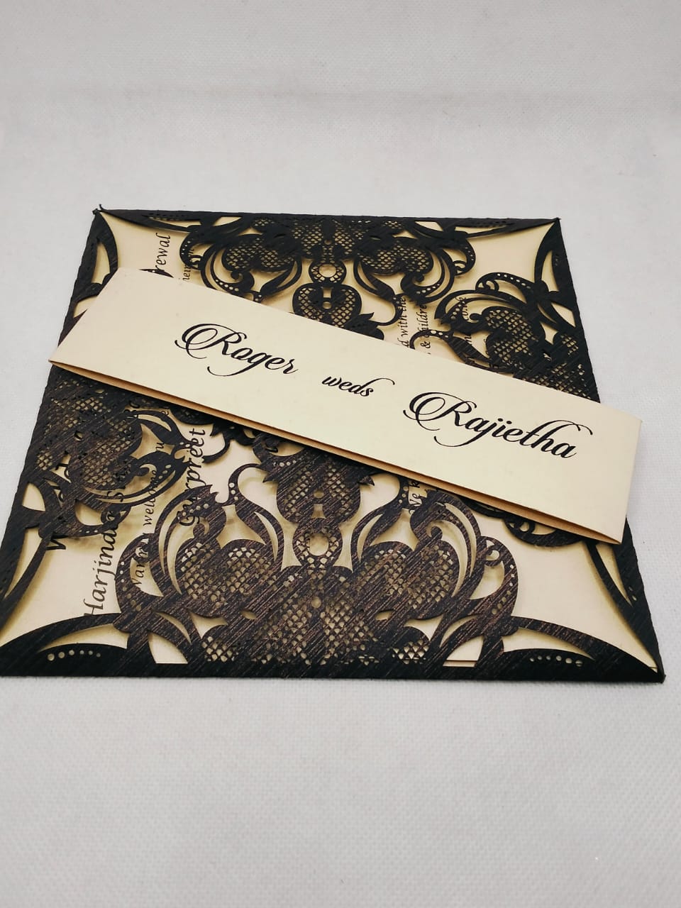 Nila cards have added an exciting new range of Laser cut cards for Hindu, Sikh, Muslim, and Christian weddings. We also have laser-cut stickers. Such as Ganpati, Radha Krishna, Ek Onkar, Allah, Bismillah Cross, and many more which give added richness to your wedding invitations. All invitations are fully custom-made. What you see on the website is an example of the work we can deliver to you.
