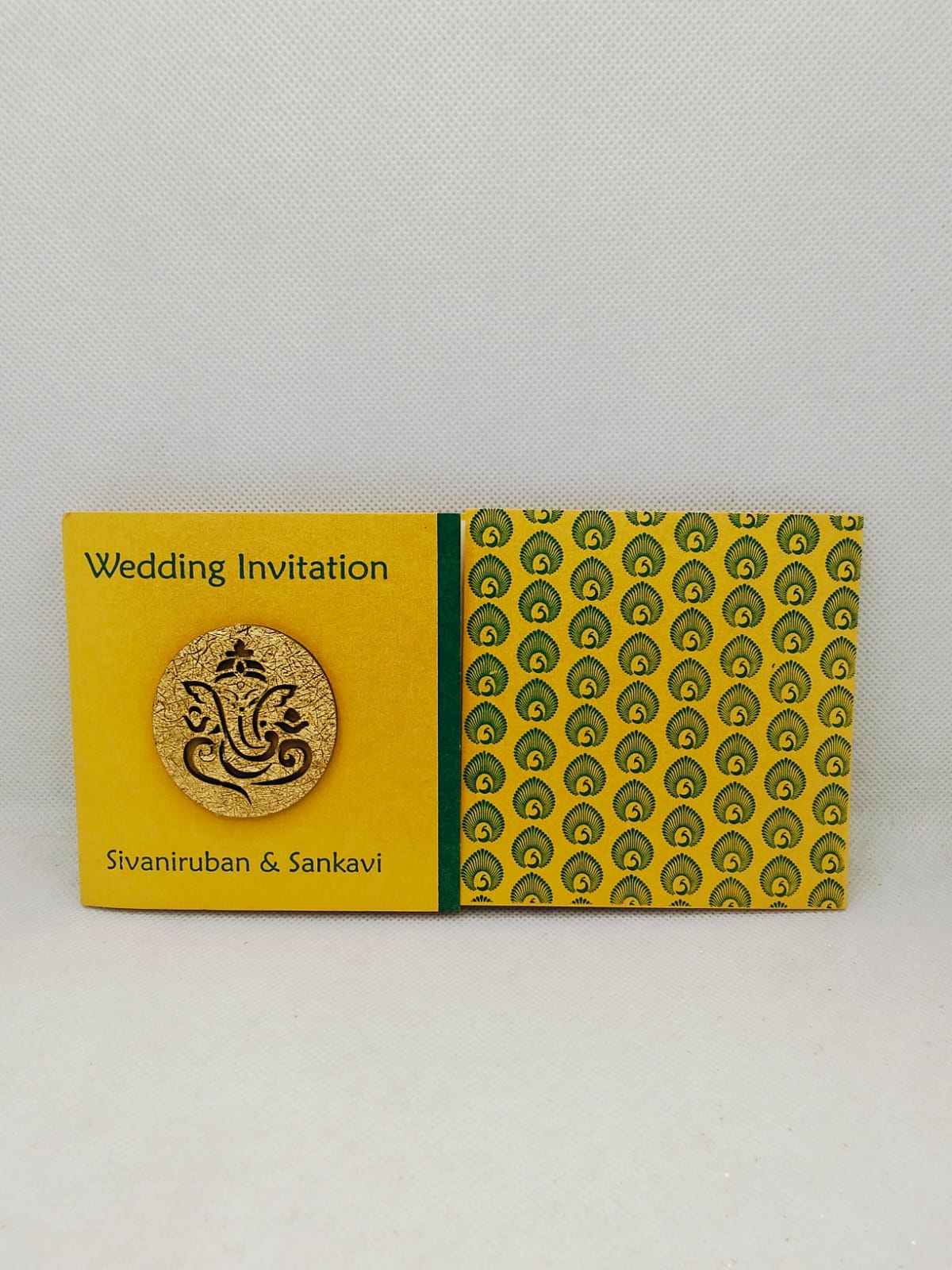 Gold and green door open small invitation is our unique product. We know the importance of your big day and our part in providing a grand opening to the event. Our invitations are stylish, uncommon, and eye-catching. It will satisfy your expectation and also earns appreciation from your family and friends.