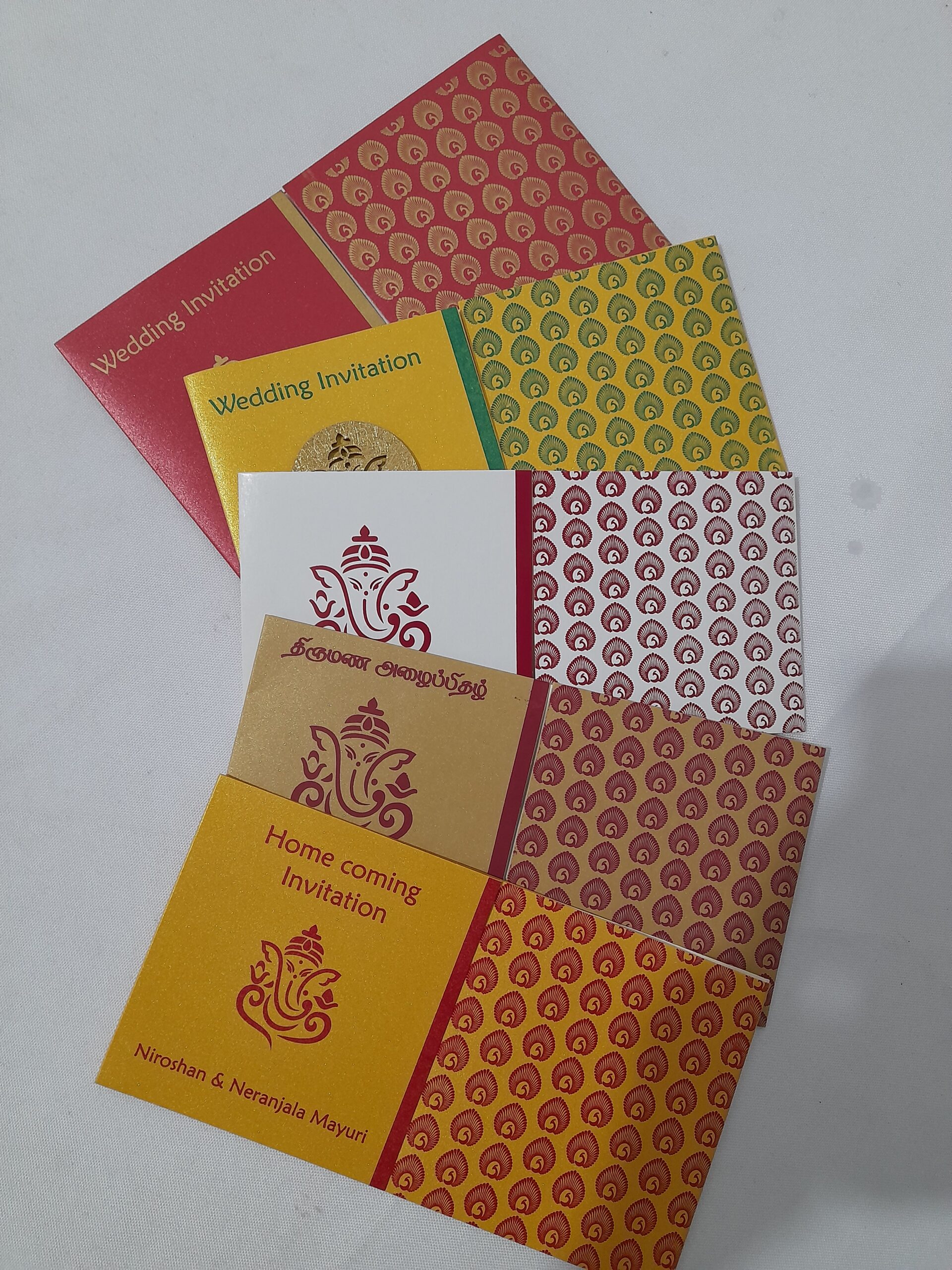 Singh Indian weddings and Tamil Hindu weddings are very colorful. They are traditional and rich. You also invite guests from different cultures. We create the look and feel of a classy finishing to a very traditional or very modern wedding invite. We use our technical expertise such as foiling, embossing, watermarks, velvet finishing, and many more. Our printing background is rich and deep with more than 25 years of experience in the industry.