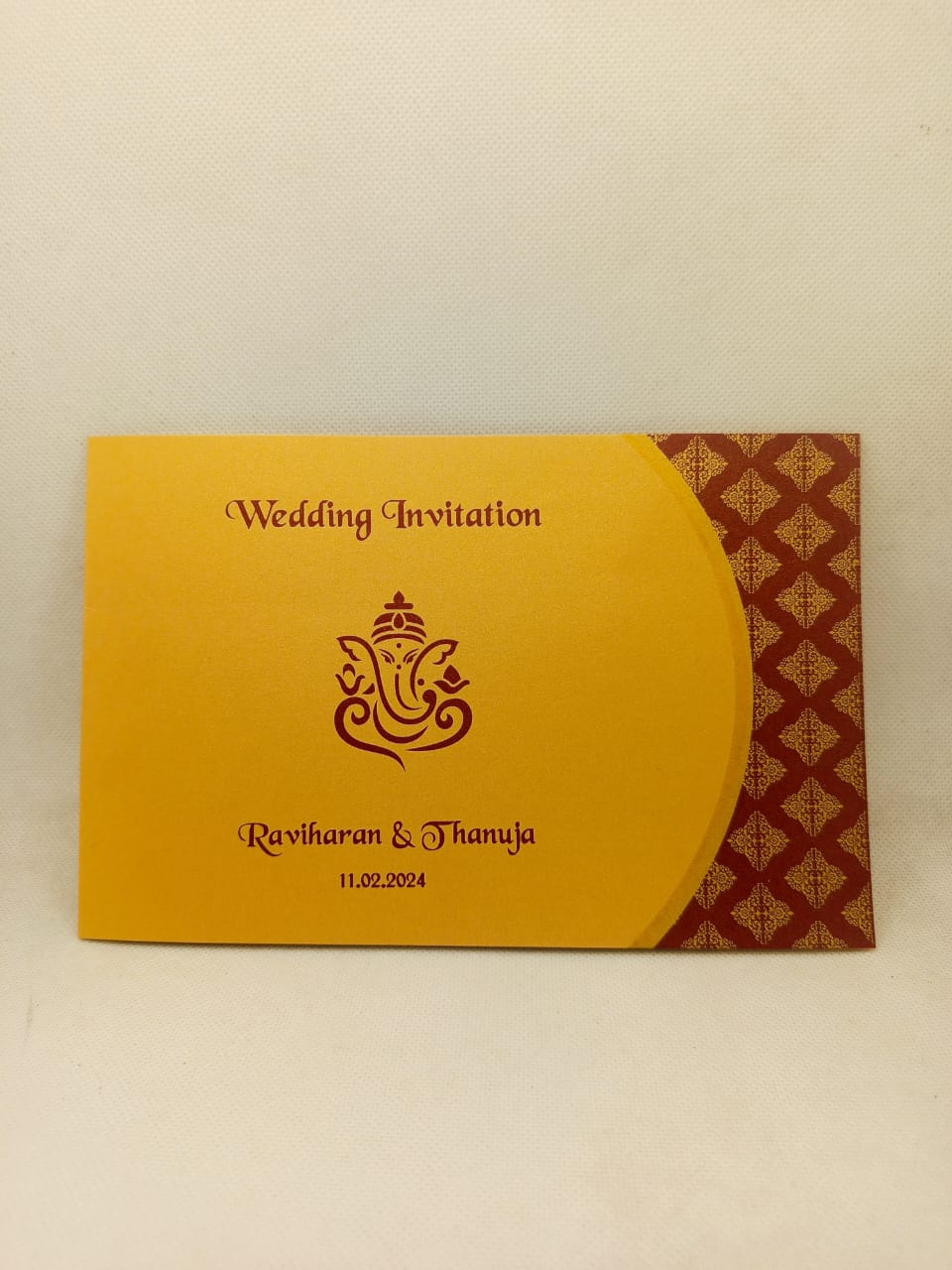 Gold and maroon hindhu wedding invitation is our unique product. We know the importance of your big day and our part in providing a grand opening to the event. Our invitations are stylish, uncommon, and eye-catching. It will satisfy your expectation and also earns appreciation from your family and friends.