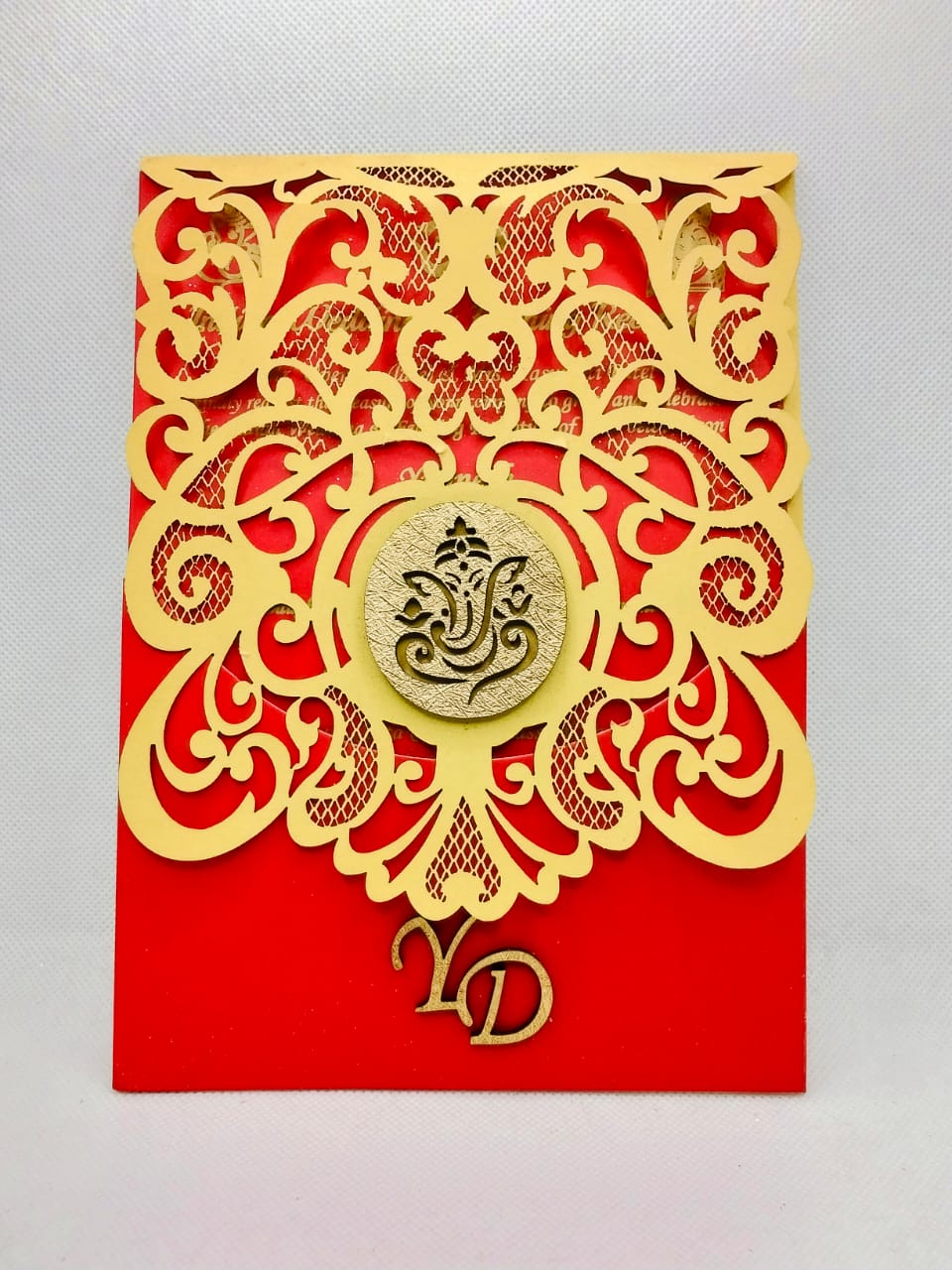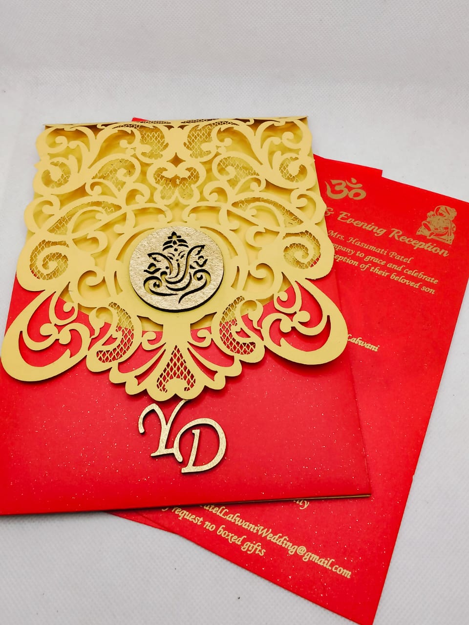 Laser cut red and yellow wedding invitation is our unique product. We know the importance of your big day and our part in providing a grand opening to the event. Our invitations are stylish, uncommon, and eye-catching. It will satisfy your expectation and also earns appreciation from your family and friends.