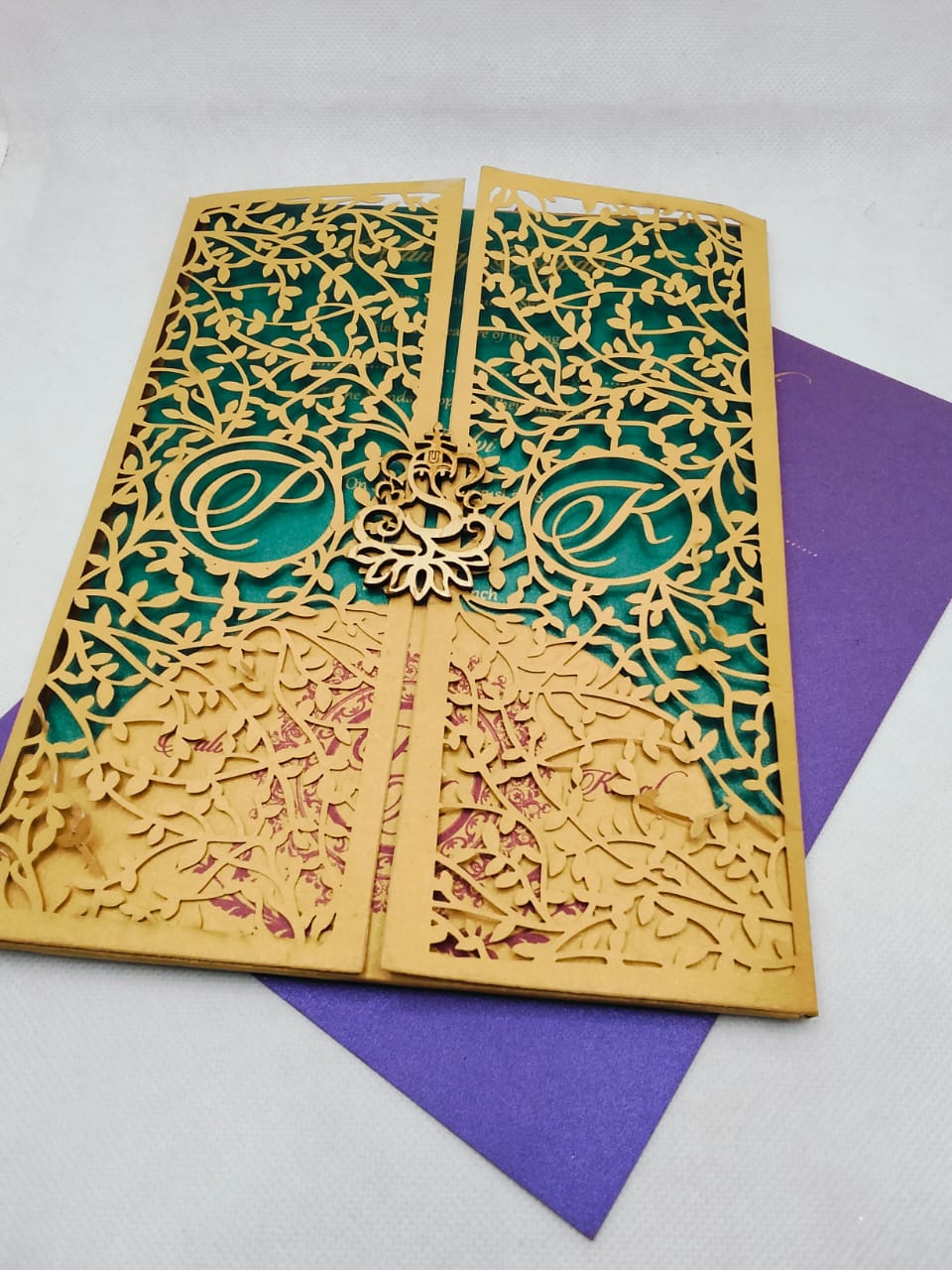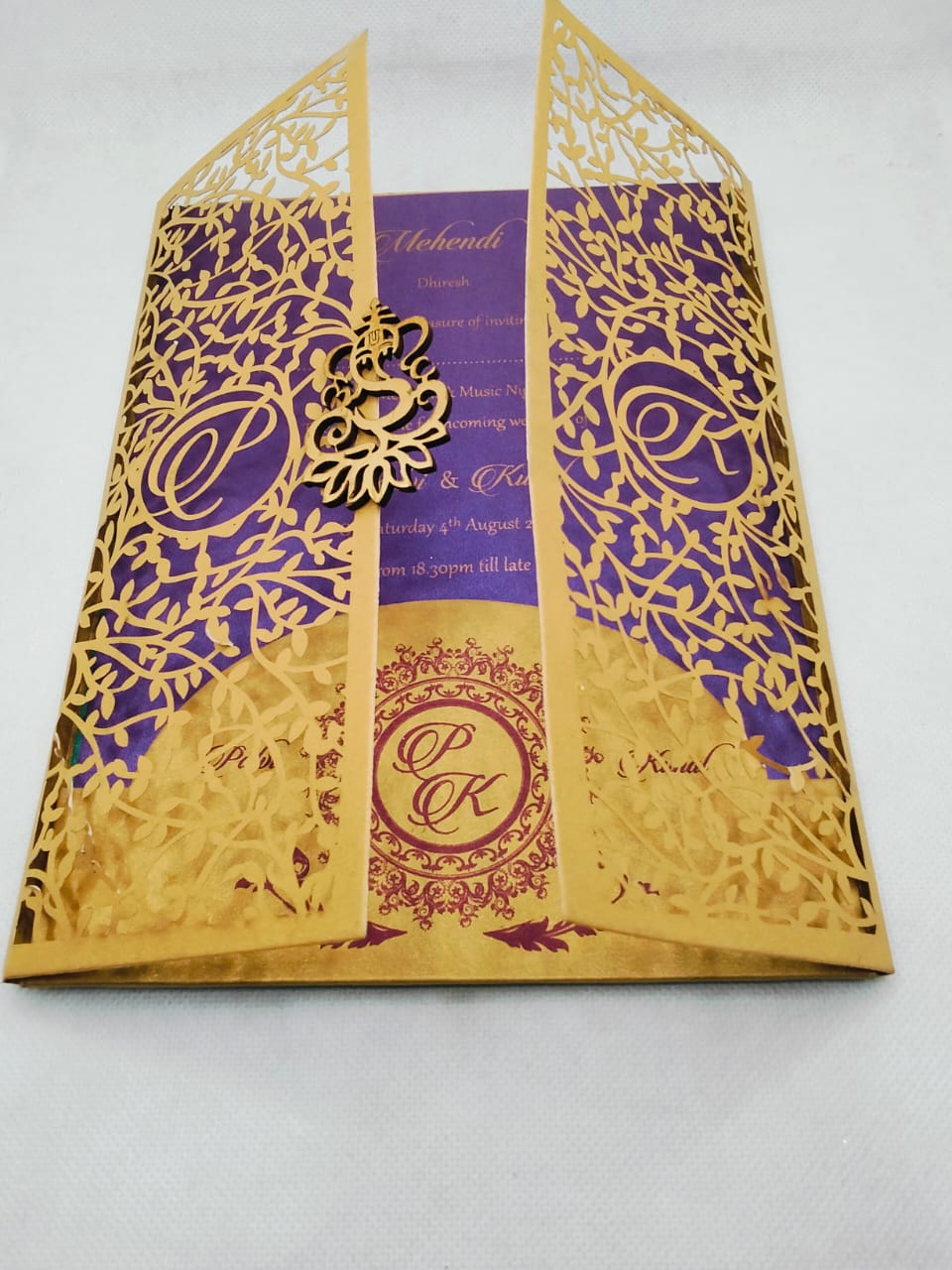 We have added an exciting new ranges of Laser cut cards for Hindu, Sikh, Muslim and Christian weddings. We also laser cut stickers as Ganpati, Radha Krishna, Ek Onkar, Allah, Bismillah Cross and many more which gives a added richness to your wedding invitations. All invitations are fully custom made. What you see on the website is an example of the work we can deliver to you.