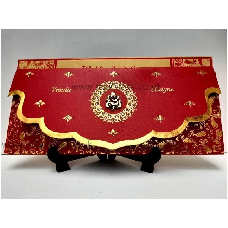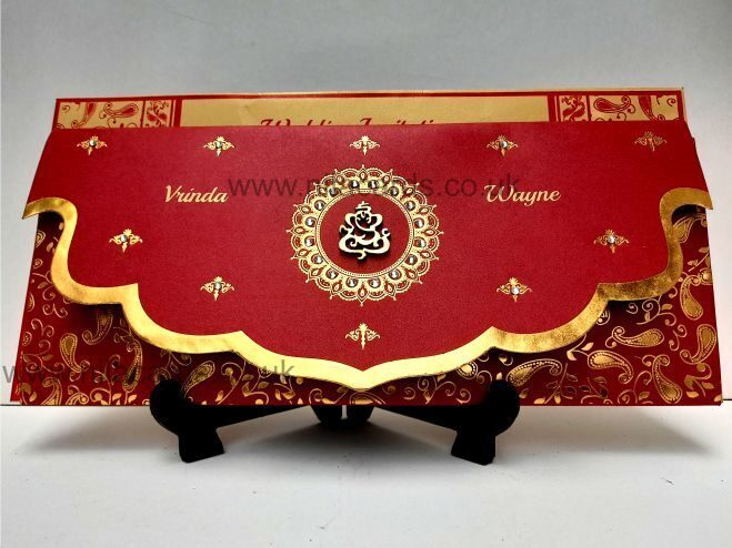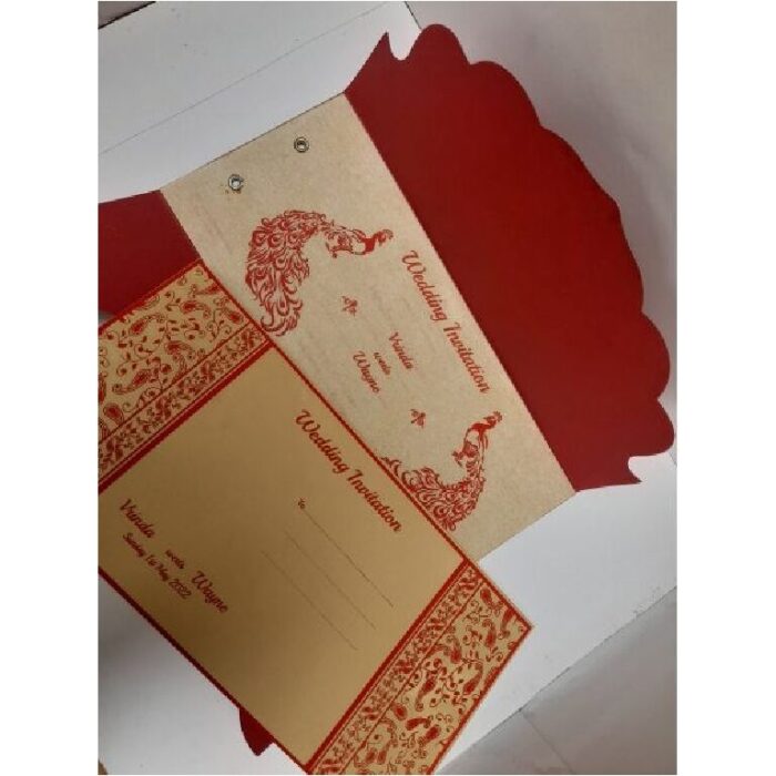 Nila Cards is a UK based company and we maintain our differentiation from usual ready made Indian wedding cards available on the Internet from India. We take extreme to ensure that your Traditional Red Scalp Wedding Invitation is made to your requirements.